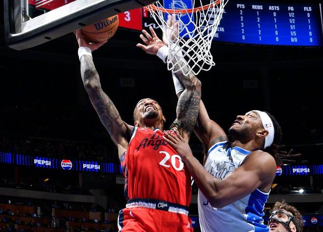 快船客场以101-129惨败给魔术,28分的巨大分差像一记响亮的耳光,狠狠抽在了这支所谓“争冠豪门”的脸上。赛前美国数据媒体FiveThirtyEight给快船开出的胜率仅有31%,结果现实比预测还要残酷——没有小卡、没有足够帮手的快船,在魔术这群活力四射的年轻人面前,几乎是被按在地上摩擦。整场比赛,快船从首节上来就挨打落后,三节打完比赛基本上失去悬念,末节早早进入垃圾时间。这不是一场意外,而是本赛季快船真实战斗力的缩影。
